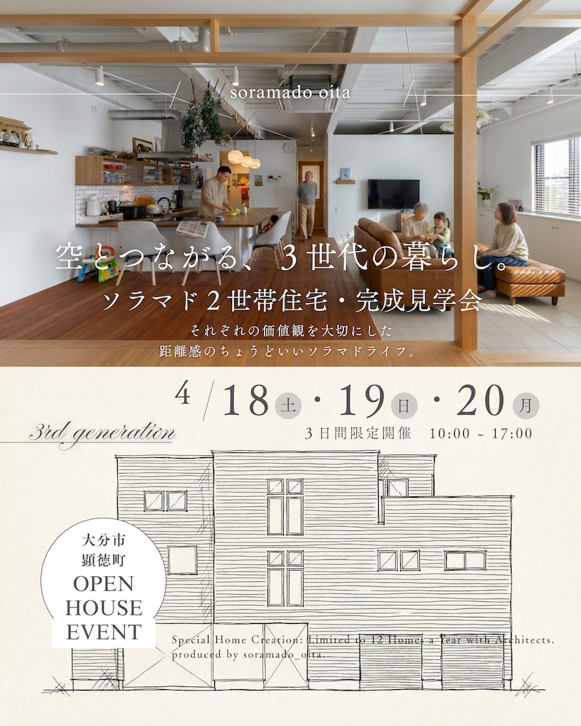 大分市顕徳町に完成するソラマドの「2世帯住宅」完成見学会です。