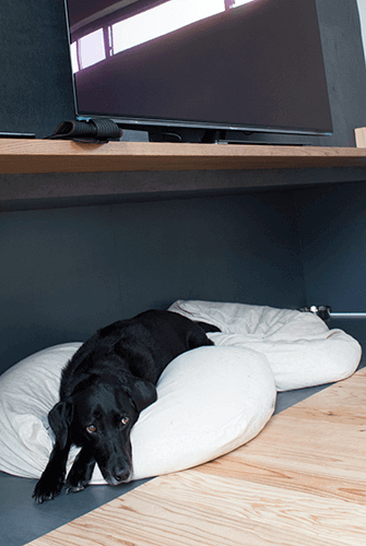 テレビの下の空間に大きなクッションが2つありましたが、あれはワンちゃんのスペースですか?