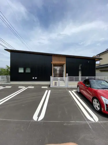 忠之さん 床面積は40坪くらいです。敷地面積は100坪くらいですかね。住居自体はすごくコンパクトですが快適です。駐車場はマックス7台停めれます。