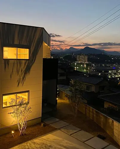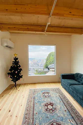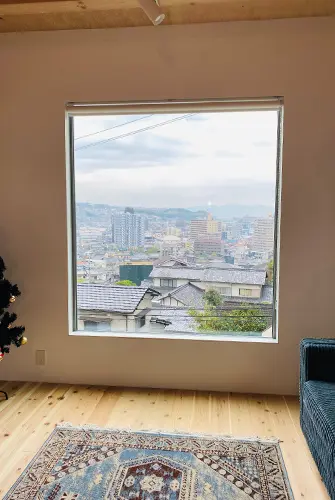 土地選びから完成まで約4年。とうとう完成しましたね。大きな窓越しに見える大分市中心部を見下ろすこの眺め、いいですね〜。