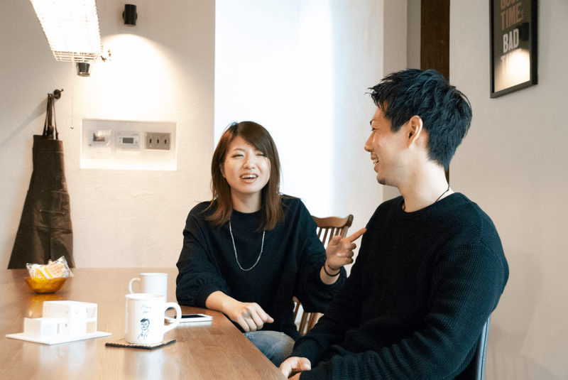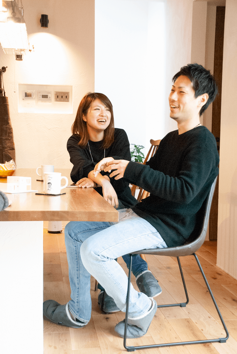 怜さん 最初の窓口は造士さんと話して、ダイスケさんがデザインしてくれて。それから着工すると現場の責任者が上杉さんから長浜さんに変わっていきましたが、変わらずみなさんと仲良くさせてもらっています、今でも。