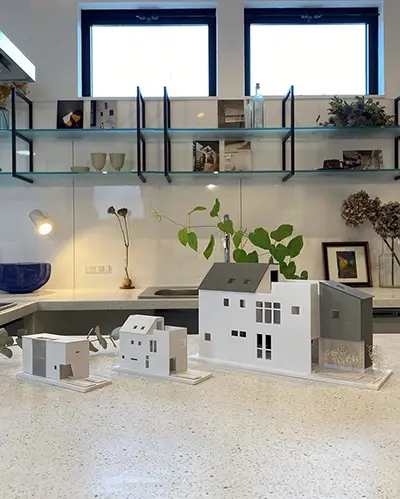 藍さん 家の模型も最終的に3個作ってもらいました。でも2回目のプラン提案のときには家の外側に関しては、ほぼ決まりました。打合せを重ねるたびにソラマドさんからの提案には、感動しましたね。