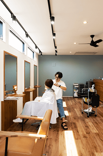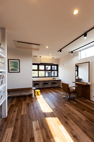 美容師の旦那様と事務を担当する奥様がこの地を選択し悩み抜いた末、自宅兼店舗を完成させました。