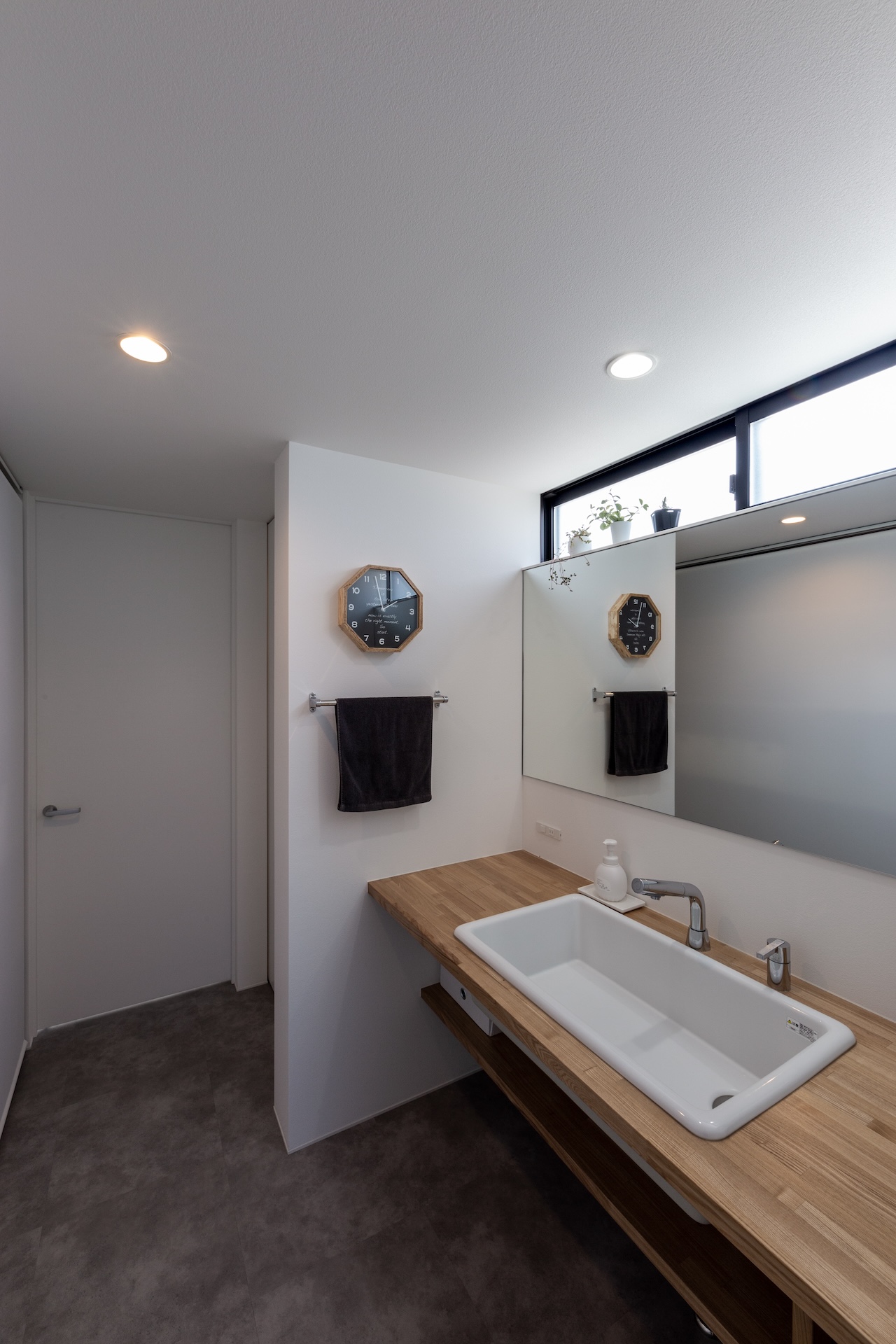 未久さん バスルームの脱衣室に洗濯機を置いています。洗濯物は乾燥機とセットで使っていて、そこに干せるようにもしています。だからあんまり外に出すことがなくなりました。雨の日も気にしなくていいので助かります。洗面は独立させました。誰かがお風呂に入っていても気にせず使えるので利便性が高いです。
