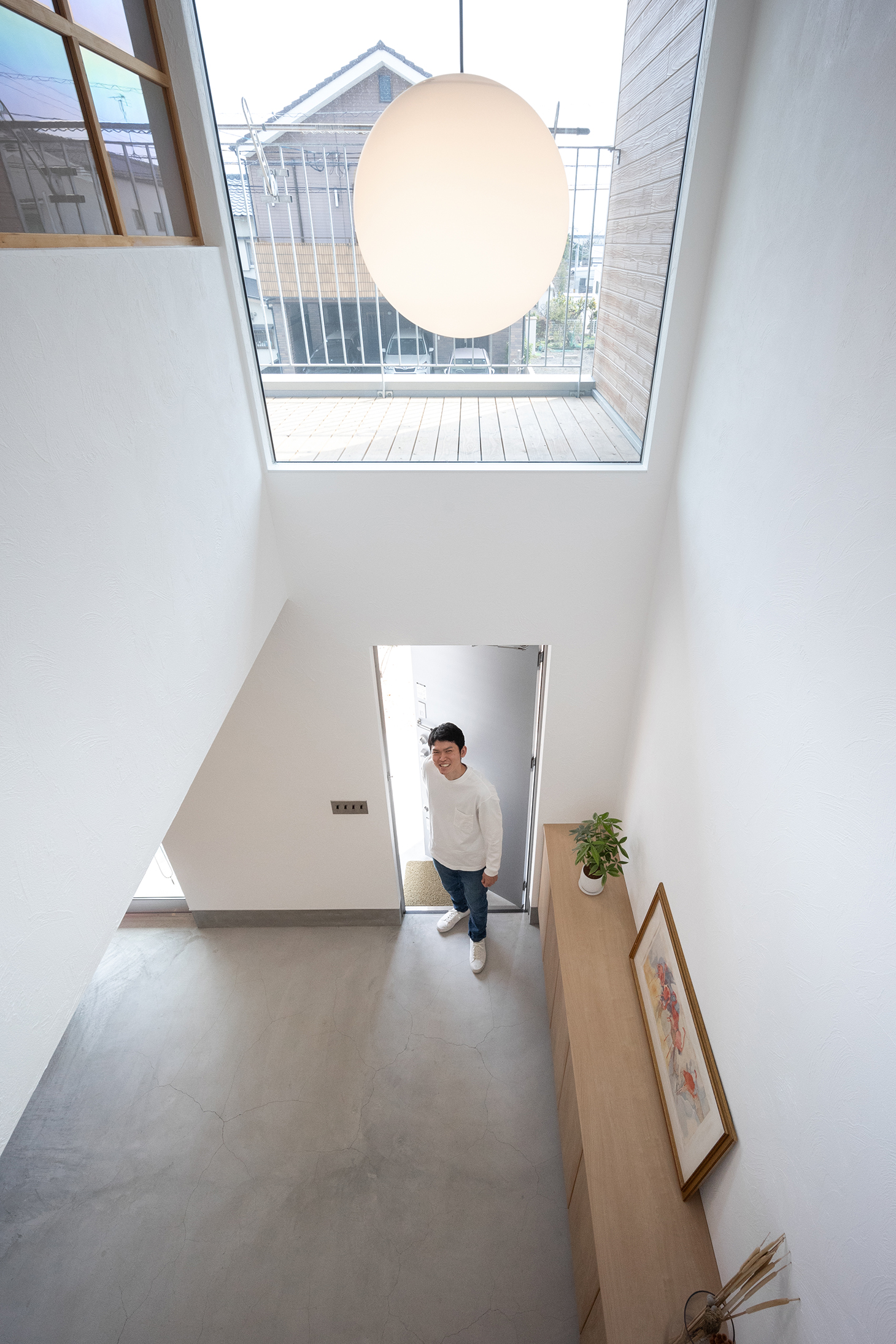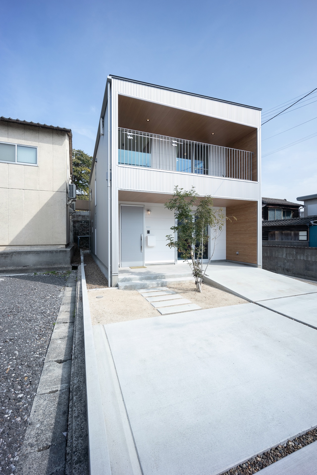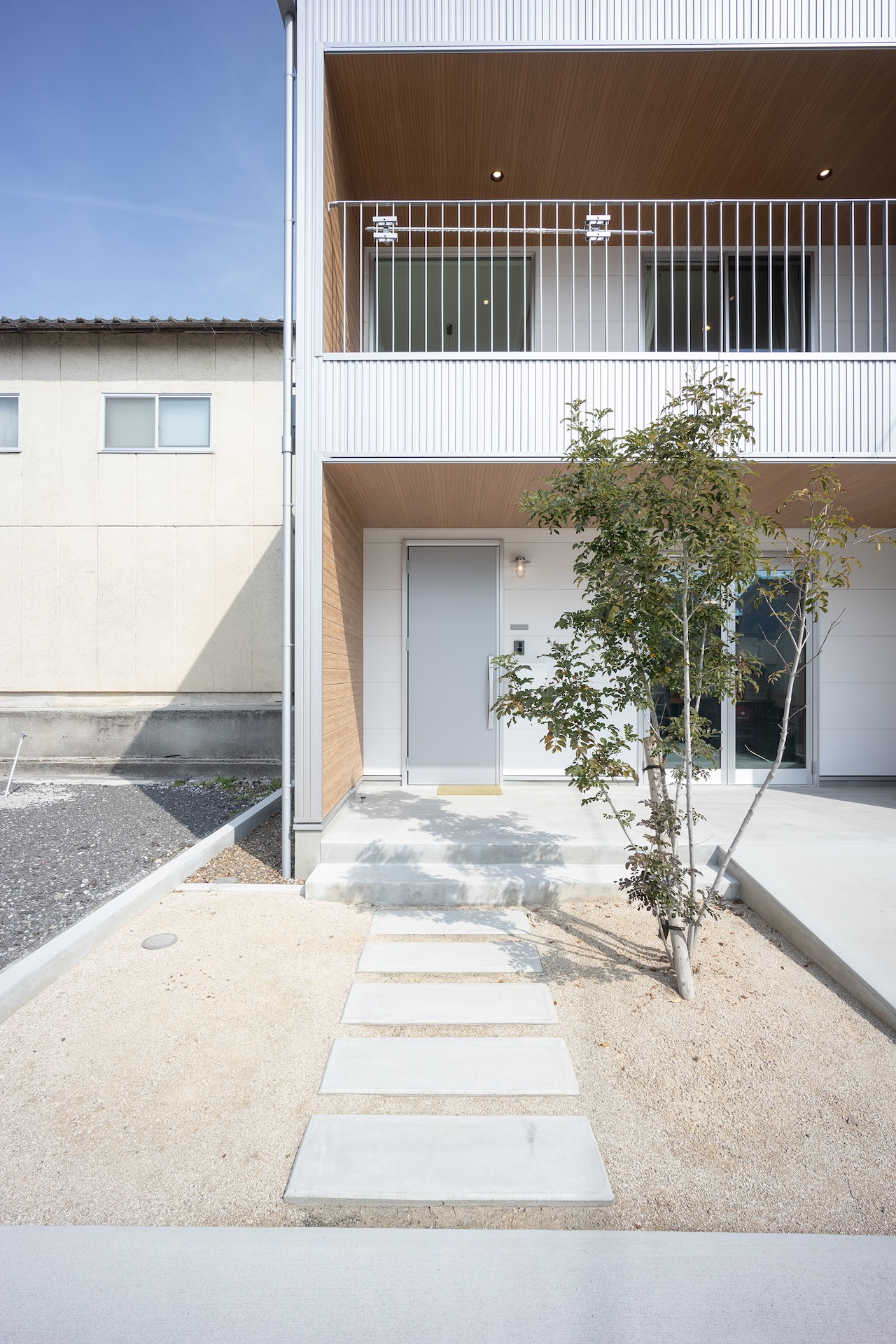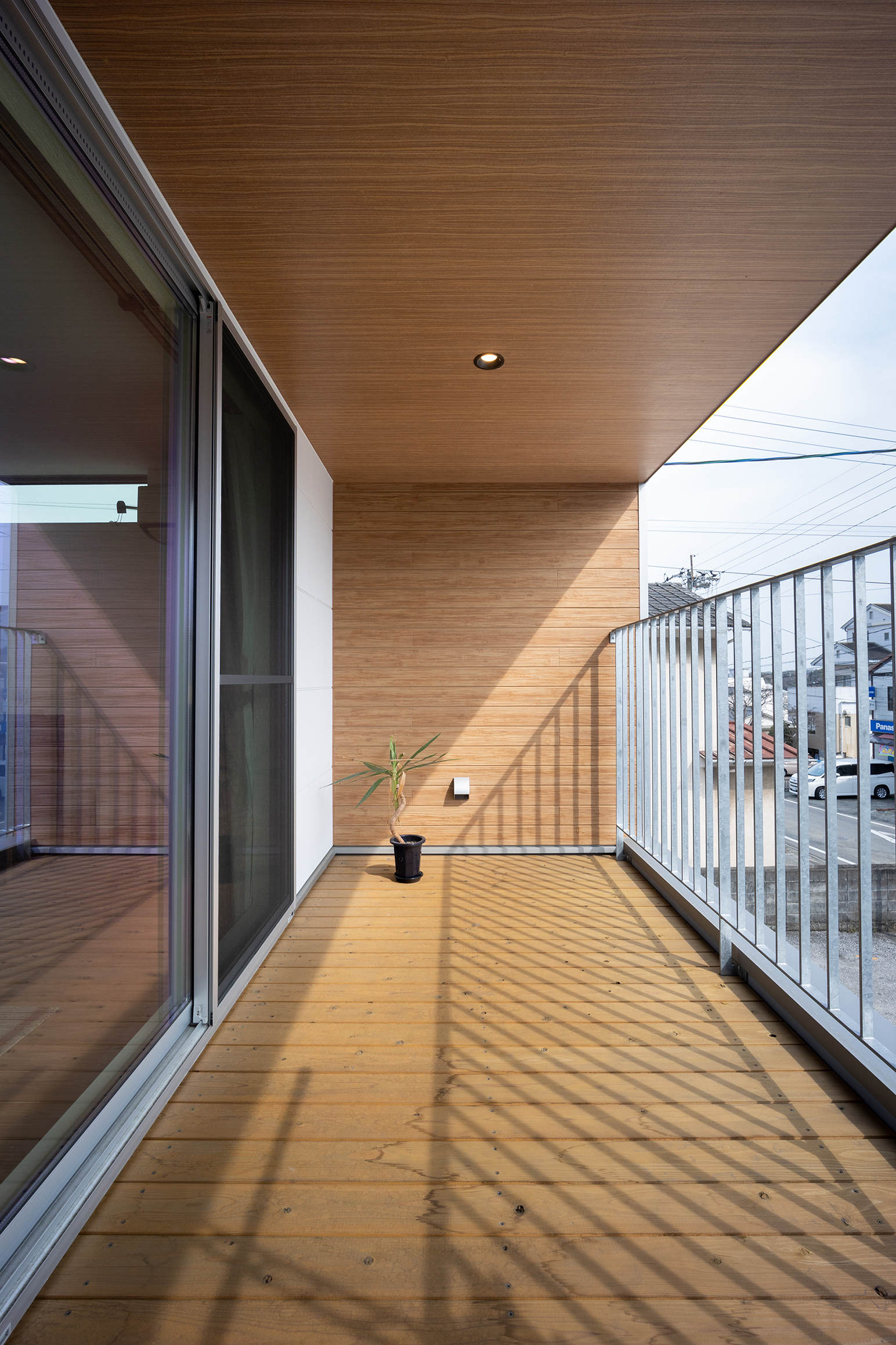 彗吾さん 2階のバルコニーのところの壁の色も、最初ここもシルバーのガルバリウムにしようと僕らは思ってたんです。でもダイスケさんから「ガルバだとゴテゴテしすぎるから、白にしたほうが奥行きと立体感出て、すっきり広く見えるよ」って言われて。