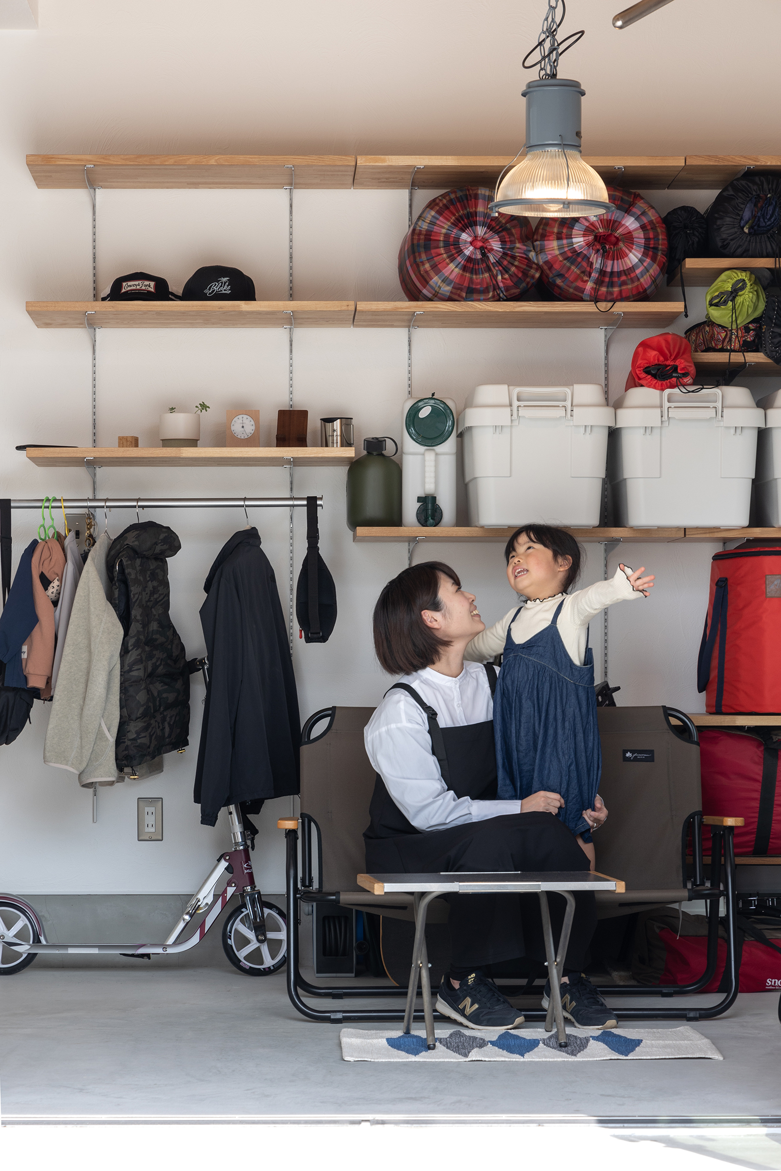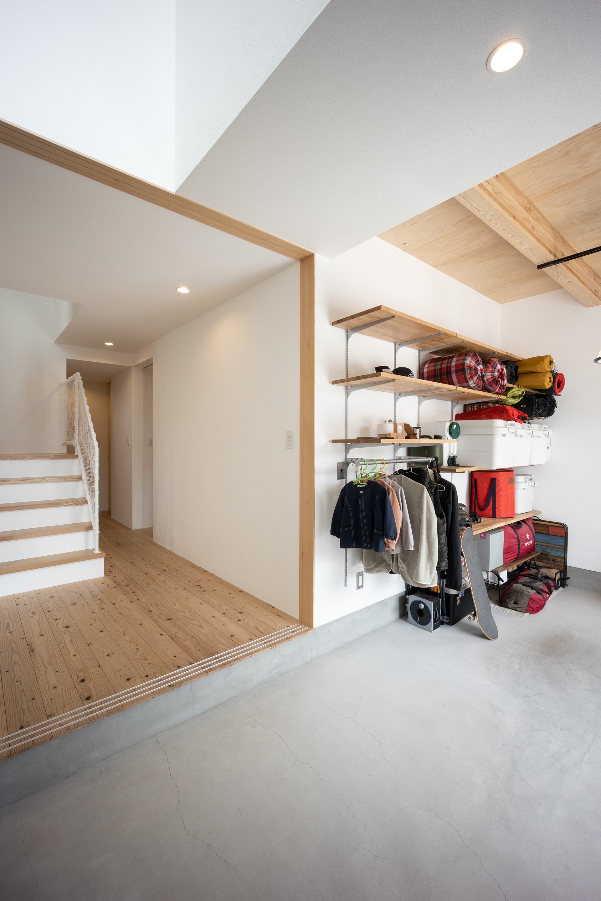 愛さん コロナ禍になってから家族でキャンプによく行くんですけど、以前アパートに住んでいた頃は、キャンプ用品をギッシリ収納してて。家を建てたらちゃんと収納スペースを作りたかったんです。アパートでは2階に住んでいたんですけど、キャンプ用品を車に運ぶのがすごく大変だったり、テントを使った後、きれいにして干すところもなかったんです。