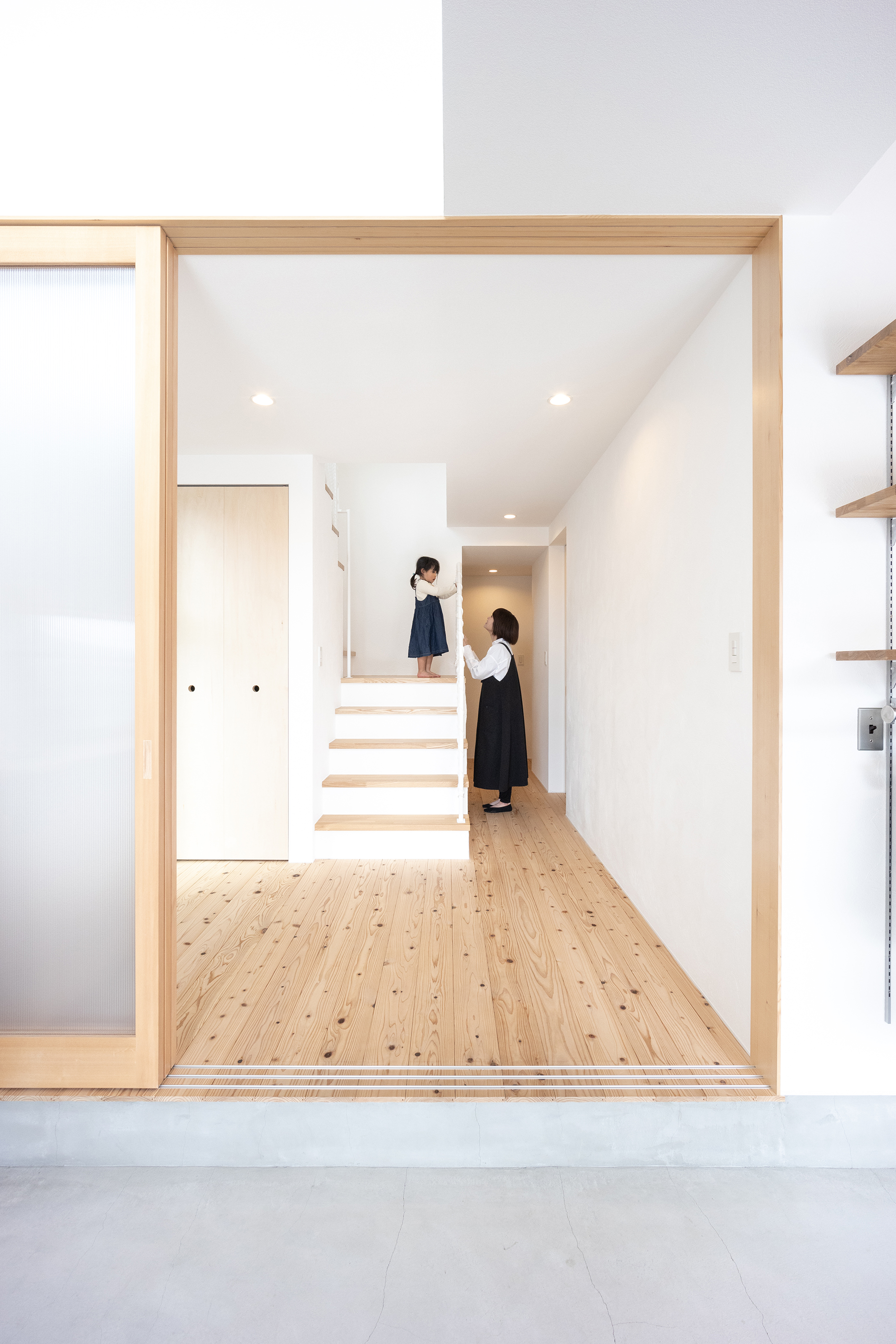 2階をリビングやキッチン、子ども部屋などメインの居住空間にして、1階に寝室や浴室、脱衣所、トイレ、ファミリークローゼットという間取りにした点はどうですか?