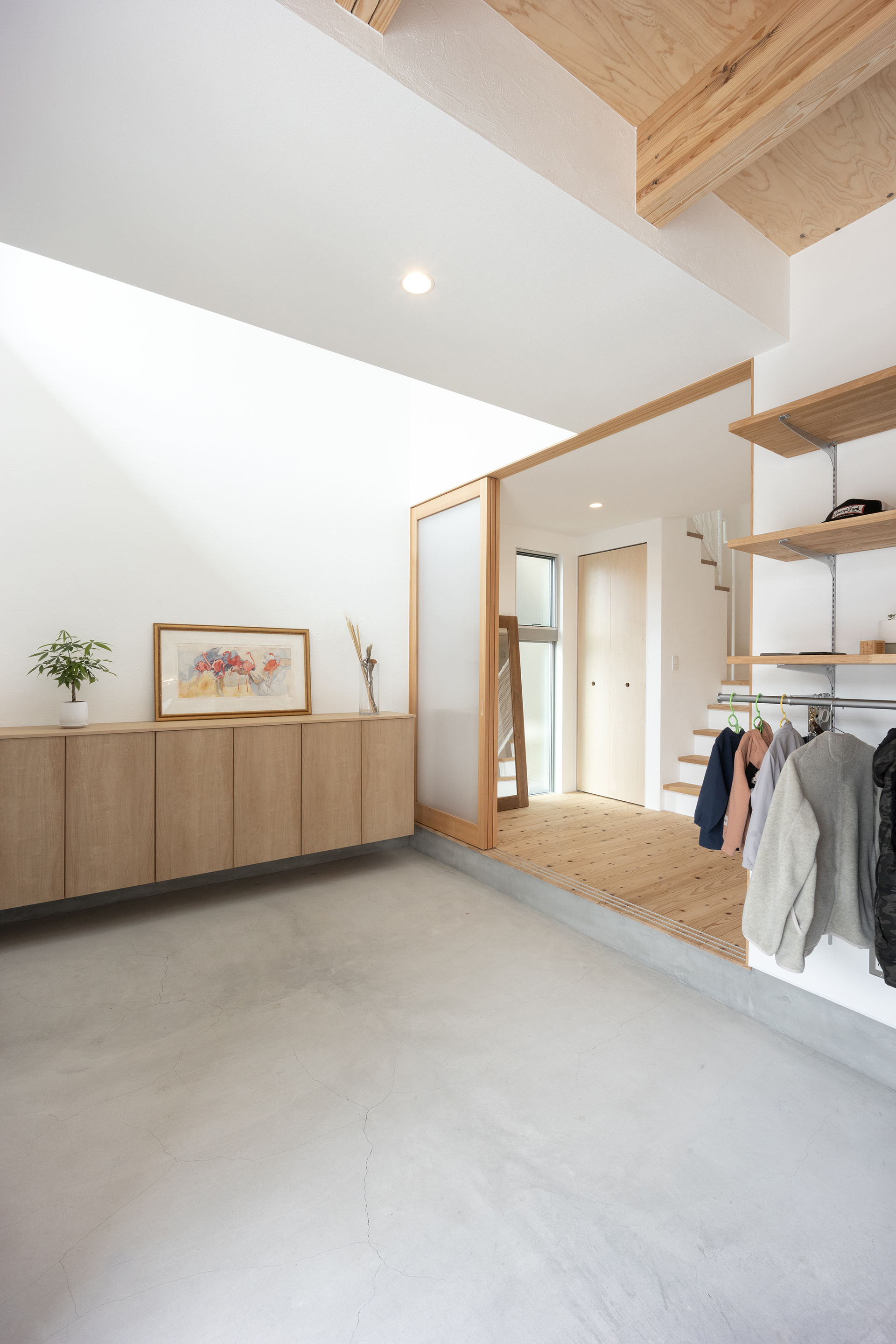 いつかガレージに愛車が置ける日が来るといいですね。あと、ひとつ気になったのは土間スペースの天井にある手すり?のようなもの、あれは何ですか?